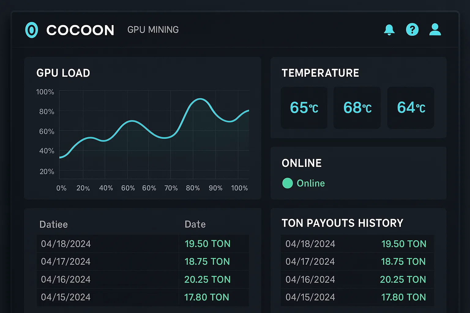 При этом важно понимать: Cocoon майнинг — это не классический «добывающий» майнинг криптовалюты, а участие в децентрализованной сети ИИ‑вычислений, где владельцы GPU сдают мощности в аренду и получают вознаграждение в TON.