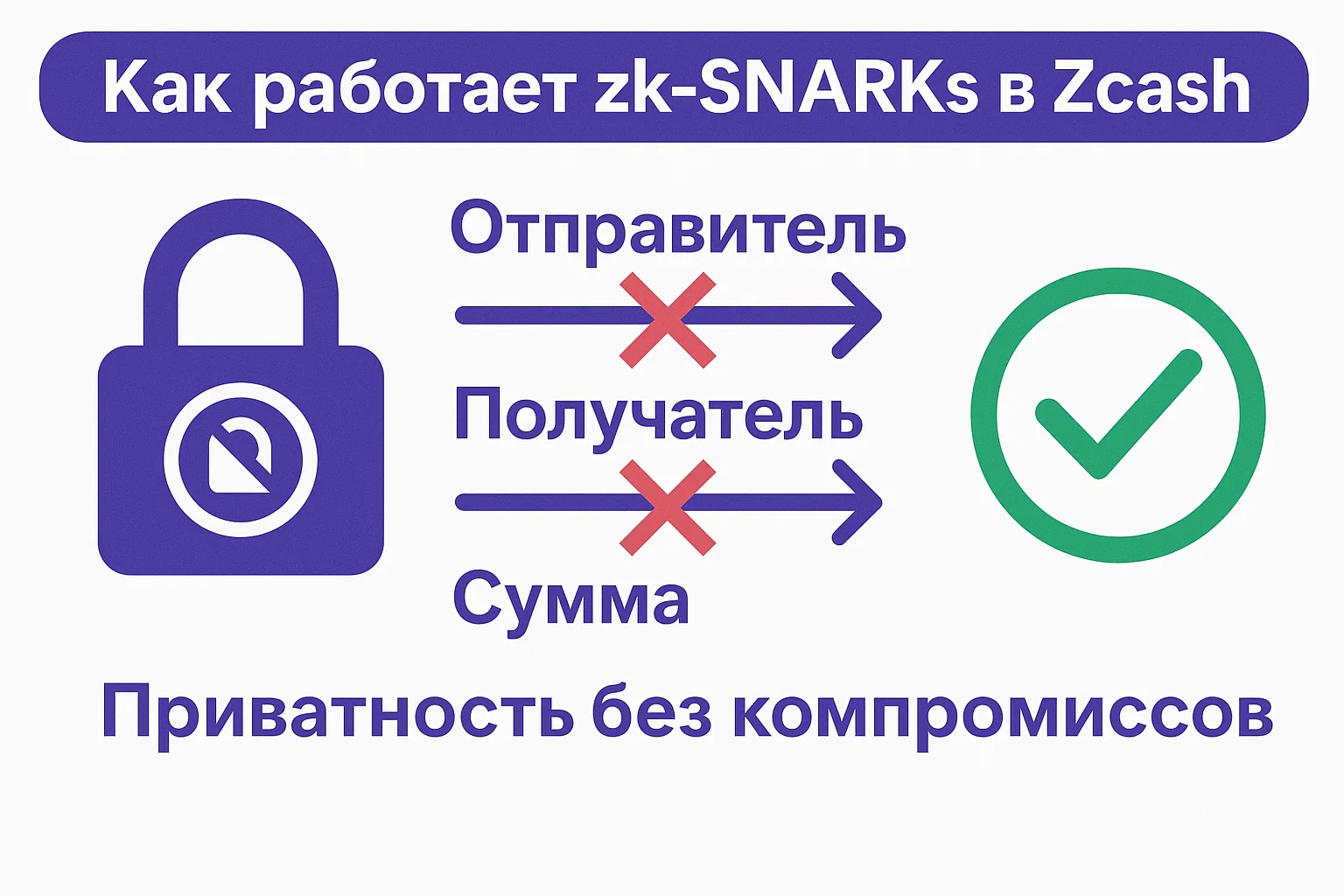 В основе технологии приватности Zcash лежит zk-SNARKs — криптографический метод, позволяющий одной стороне доказать, что транзакция является действительной, не раскрывая никаких ее деталей.