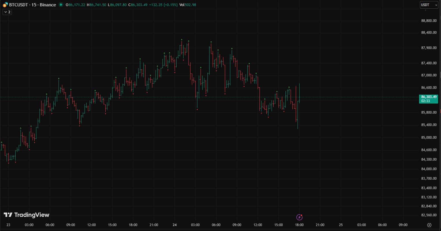 К утру 24 ноября Bitcoin торгуется в районе 86–88 тыс. долларов после нескольких волатильных сессий и резкого падения из области исторических максимумов. Инвесторы фиксируют прибыль и закладывают в цену усиливающиеся ожидания снижения ставок ФРС, но общая капитализация крипторынка остаётся около 3 трлн долларов, что указывает на сохранение интереса к цифровым активам.